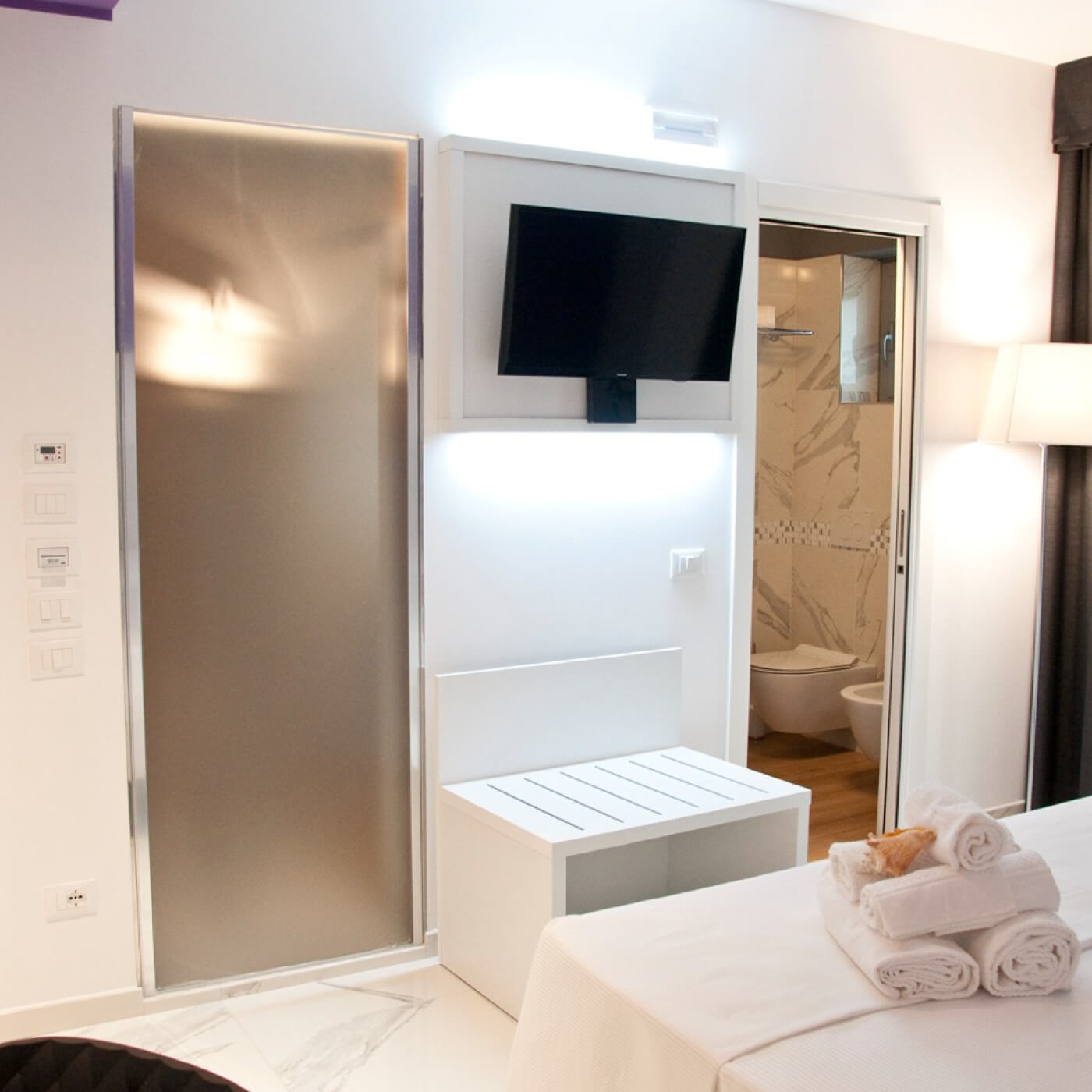 Vetro satinato fra camera da letto e bagno