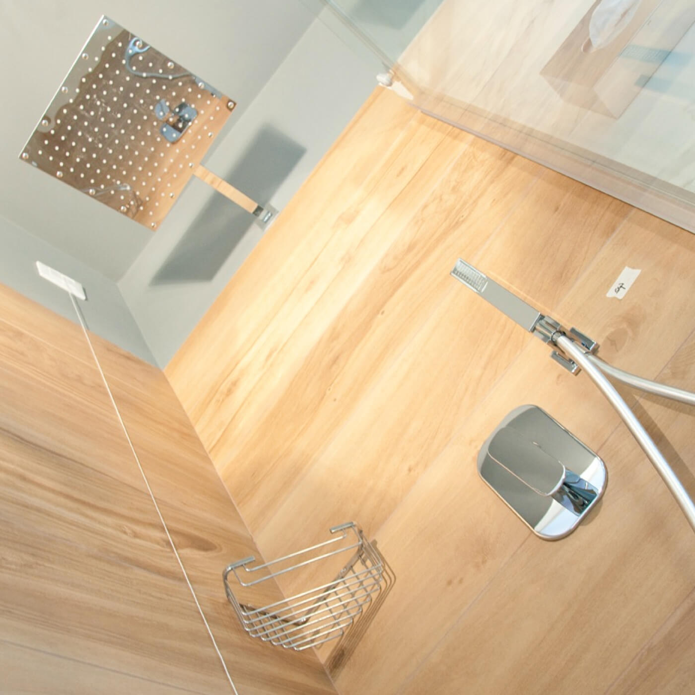 Bagno dalle dimensioni essenziali con piatto doccia a terra e finestra