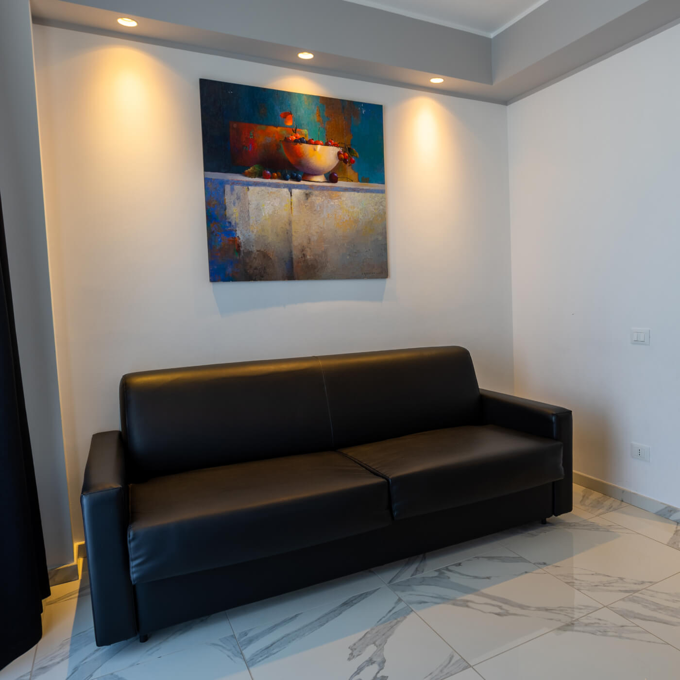 Bilocale con stanza matrimoniale e stanza living dotata di divano letto matrimoniale ultracomfort , tutta servita da balcone vista collina.